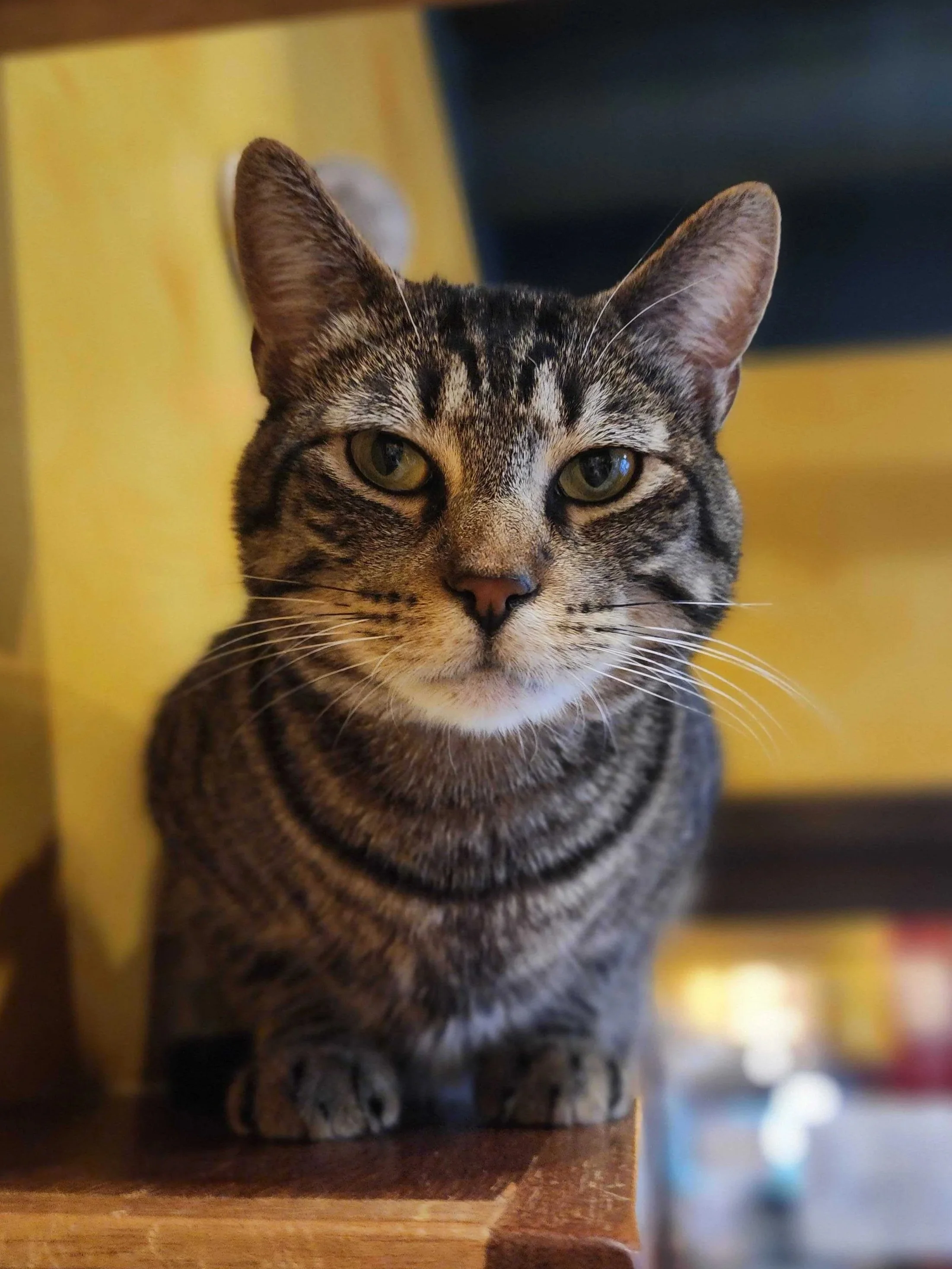 Fili is a curious and attention-loving brown tabby that blessed the lounge with his presence for about a year before before he was adopted in June 2025. He loved to greet everyone person that walked through the door and stare at them with his sad, old man-like eyes until they gave him the attention he deserved. He also loved to supervise any feline guardian doing paperwork by laying on top of whatever they were working on. He was very helpful in that way!